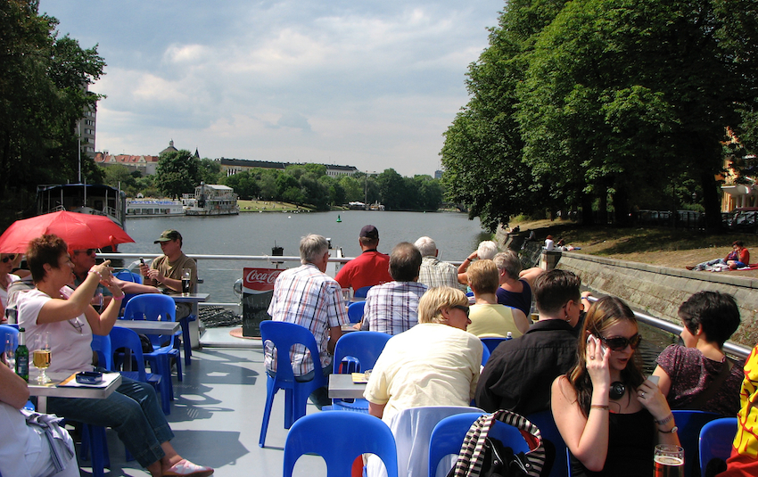 We took a 3-hour boat tour which uses the Landwehr Canal and Spree River to loop through Kreuzberg and Mitte (downtown). Just getting started here, in the canal.