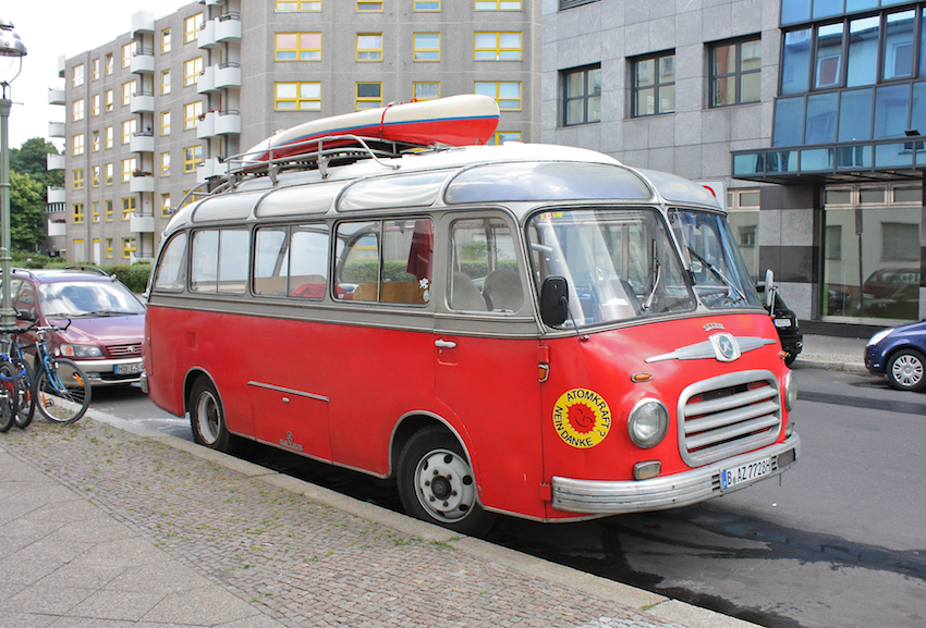 Vintage Setra touring bus. The sticker says "Nuclear Power ? No Thanks"